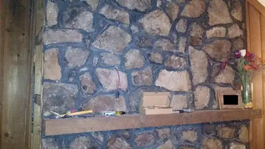 The stones in the facade are relatively thick, averaging 6" (15cm). They are laid and mortared in front of 1/2" (1.2cm) plywood sheets. The sheets are in front of the actual block of the chimney.