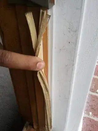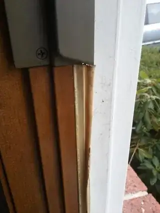 This weather stripping is about 20 years old, and obviously it's no longer doing anything. It seems like it's stuck between those pieces of wood, but I can't tell if it's glued in, or if there are nails holding it in, or if it's just a compression fit. Can anyone identify how it was installed? If it's really in there, I was thinking I'd just cut it off and grab some adhesive based stripping to replace it.