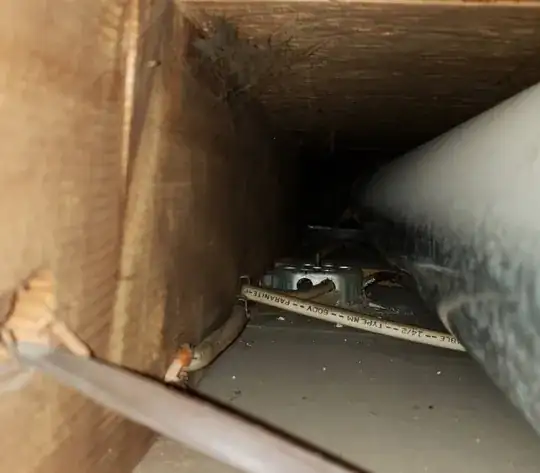 Outlet that feeds 2 lights and into a junction box also pictured. Hidden in the ceiling in the middle of the room.