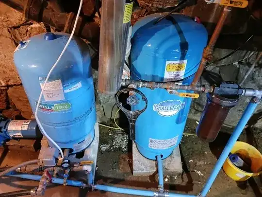 Just added these pics. One picture is of the pressure switch on the 20ft hand-dug well reading 40ish. The other pressure gauge is at the base of one of the tanks reading 25 psi. Seems this may be low. How do we increase the pressure? Both wells are hooked up to the house we seem to have the same issue of whether both pumps are on or just one.