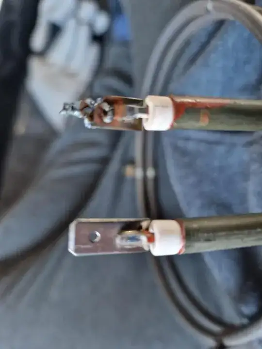 So I took the element out to have a look and found that one of its two male connectors was burnt up.