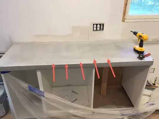In the future when you make a concrete counter make sure to use a sturdy cabinet(s) as concrete is heavy and modern compressed wood cabinets can't take the weight an old wood or even plywood cabinet could. You should also make sure to tie down the reinforcing mesh so it stays centered in the concrete.