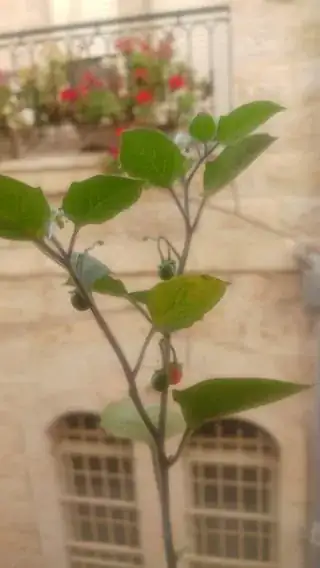 The plant is still small but growing, and it has some small fruit-beginning (all green, but one which is red), but it really doesn't seems like it's going to be a sweet potato or something similar. It looks more like a tiny cherry tomato.