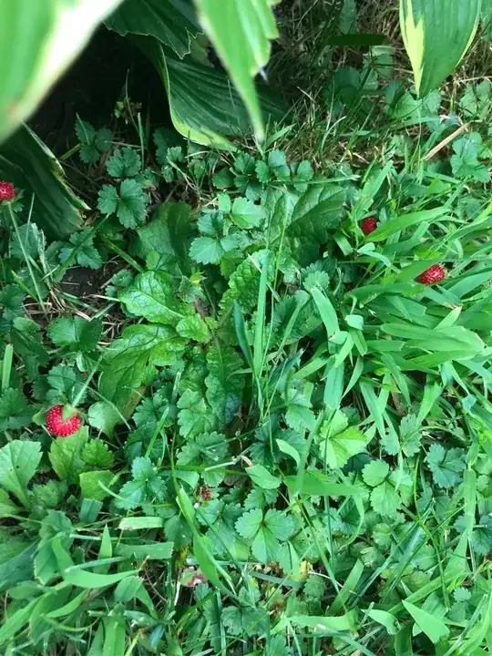 They look like mock strawberries. Duchesnea indica. They are edible (if they are truly mock strawberries), but not as tasty as real strawberries.