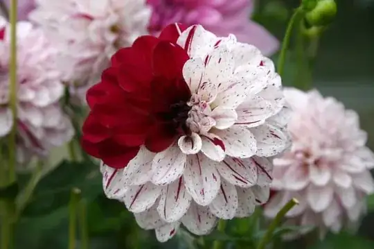 I have several Hulin's Carnival dahlias in my garden, whose flowers are normally white with flecks or large patches of wine: