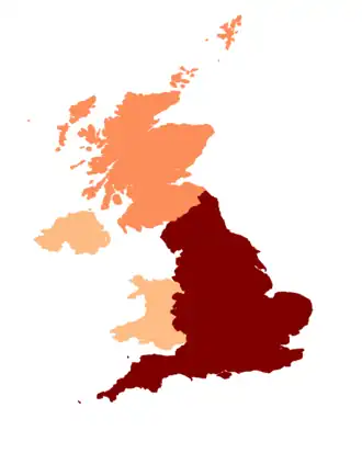 ![]() Confirmed cases by countries in the United Kingdom during the 2022 outbreak (as of 12 July)