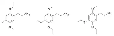 Many tweetio derivatives of various 2C drugs have been synthesized and tested, including the 2-ethoxy homologues 2CD-2EtO, 2CB-2EtO, 2CI-2EtO, 2CT-2EtO, 2CT2-2EtO, 2CT4-2EtO and 2CT7-2EtO, the 5-ethoxy homologues 2CD-5EtO, 2CE-5EtO, 2CB-5EtO, 2CT-5EtO and 2CT2-5EtO, and the 2,5-diethoxy homologues 2CD-diEtO, 2CB-diEtO and 2CT2-diEtO,[1] as well as 2CE-5iPrO.[2] In general, the 2-ethoxy homologues were all several times less potent and somewhat shorter acting than the parent compounds, while the 2,5-diethoxy homologues were far less potent and qualitatively milder even at high doses.[3] The 5-ethoxy homologues however were of a similar potency to the parent compounds and much longer-lasting, with both 2CE-5EtO and 2CT2-5EtO lasting 24 hours or more.