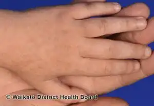 - ↑ James, William; Berger, Timothy; Elston, Dirk (2005). Andrews' Diseases of the Skin: Clinical Dermatology. (10th ed.). Saunders. ISBN 0-7216-2921-0.
