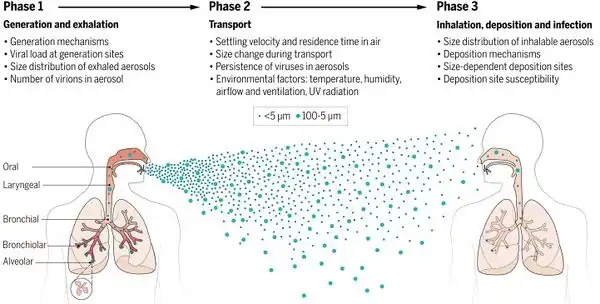50. Wang CC, Prather KA, Sznitman J, Jimenez JL, Lakdawala SS, Tufekci Z, Marr LC (August 2021). "Airborne transmission of respiratory viruses". Science. 373 (6558): eabd9149. doi:10.1126/science.abd9149. PMC 8721651. PMID 34446582.