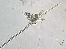 The Aphanizomenonaceae are a family of cyanobacteria containing mostly genera which produce aerotopes. Cyanobacteria from the family Aphanizomenonaceae may form blooms in lentic freshwater bodies which may be dangerous for humans.