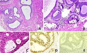 - ↑ Ghofrani, M.; Tapia, B.; Tavassoli, FA. (Dec 2006). "Discrepancies in the diagnosis of intraductal proliferative lesions of the breast and its management implications: results of a multinational survey". Virchows Arch. 449 (6): 609–16. doi:10.1007/s00428-006-0245-y. PMC 1888715. PMID 17058097.
