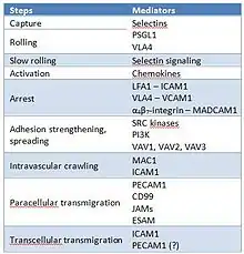 42. Ley, K; Laudanna, C; Cybulsky, MI; Nourshargh, S (September 2007). "Getting to the site of inflammation: the leukocyte adhesion cascade updated". Nature Reviews. Immunology. 7 (9): 678–89. doi:10.1038/nri2156. PMID 17717539. S2CID 1871230.