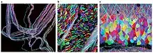 More examples of neurons examined using the Brainbow technique in transgenic mice are located in the motor nerve innervating ear muscles, axon tracts in the brainstem, and the hippocampal dentate gyrus.[4]
