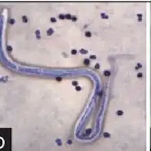 B. timori microfilariae have nuclei that extend to the tip of the tail, which is also characteristic of B. malayi but not W. bancrofti.[4] B. timori microfilariae are slightly larger than B. malayi microfilariae.[4]