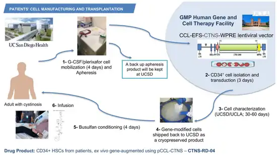 - ↑ Cherqui, Stephanie (December 2021). "Hematopoietic Stem Cell Gene Therapy for Cystinosis: From Bench-to-Bedside". Cells. 10 (12): 3273. doi:10.3390/cells10123273. ISSN 2073-4409.