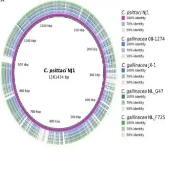 - ↑ Read TD, Joseph SJ, Didelot X, Liang B, Patel L, Dean D (March 2013). "Comparative analysis of Chlamydia psittaci genomes reveals the recent emergence of a pathogenic lineage with a broad host range". mBio. 4 (2): e00604–12. doi:10.1128/mBio.00604-12. PMC 3622922. PMID 23532978.