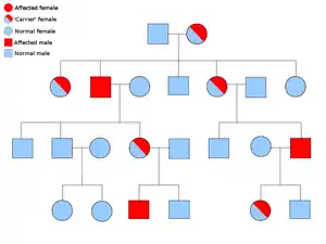 | An example pedigree chart, showing the inheritance of a sex-linked disorder like choroideremia. | |