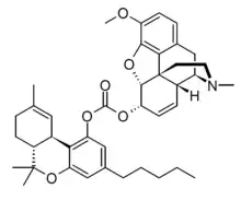 Cod-THC (Codeine Δ9-tetrahydrocannabinol carbonate) is a synthetic codrug formed by linking tetrahydrocannabinol with codeine via a carbonate bridge. It is well absorbed orally and shows superior analgesic effects in animal studies compared to a simple mixture of the two drugs.[1][2][3]