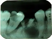- ↑ American Academy of Periodontology (1999). "Consensus report: Periodontic-Endodontic Lesions". Ann. Periodontol. 4 (1): 90. doi:10.1902/annals.1999.4.1.90.