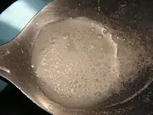 Purer forms of crack resemble off-white, jagged-edged "rocks" of a hard, brittle plastic, with a slightly higher density than candle wax.[4] Like cocaine in other forms, crack rock acts as a local anesthetic, numbing the tongue or mouth only where directly placed. Purer forms of crack will sink in water or melt at the edges when near a flame (crack vaporizes at 90 °C, 194 °F).[1]