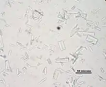 - ↑ MrlabTest - Crystals in urine, Crystalluria. URL: https://www.mrlabtest.com/urinalysis/crystals-urine.htm. Accessed on: December 10, 2021.