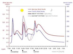 - 1 2 Emadian A, Andrews RC, England CY, Wallace V, Thompson JL (November 2015). "The effect of macronutrients on glycaemic control: a systematic review of dietary randomised controlled trials in overweight and obese adults with type 2 diabetes in which there was no difference in weight loss between treatment groups". The British Journal of Nutrition. 114 (10): 1656–66. doi:10.1017/S0007114515003475. PMC 4657029. PMID 26411958.