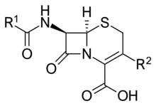 - ↑ Perez-Inestrosa, E; Suau, R; Montañez, MI; Rodriguez, R; Mayorga, C; Torres, MJ; Blanca, M (August 2005). "Cephalosporin chemical reactivity and its immunological implications". Current Opinion in Allergy and Clinical Immunology. 5 (4): 323–30. doi:10.1097/01.all.0000173788.73401.69. PMID 15985814. S2CID 13346333.