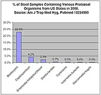 Percentage of stool samples from US states found to contain various protozoa in 2000 [44]