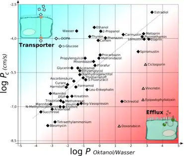 Drug permeability in brain capillaries (y axis) as a function of partition coefficient (x axis)[28]
