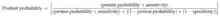 The post-test probability is a highly useful Bayesian equation that allows for the calculation of the probability that a condition is present when the test is positive, conditioned by the pretest prevalence of the condition of interest. This equation is given in box to the right: