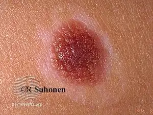 | Diagnostic method | By its appearance, dermoscopy[2] |