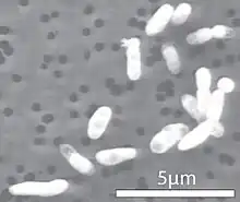 - ↑ Vreeland, R.H.; Litchfield, C.D.; Martin, E.L.; Elliot, E. (1980). "Halomonas elongata, a new genus and species of extremely salt-tolerant bacteria". Int. J. Syst. Bacteriol. 30 (2): 485–495. doi:10.1099/00207713-30-2-485.