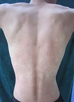 Acetaldehyde, the first by-product of ethanol, is between 10 and 30 times more toxic than alcohol itself[13] and can remain at an elevated plateau for many hours after initial ethanol consumption.[14] In addition, certain genetic factors can amplify the negative effects of acetaldehyde. For example, some people (predominantly East Asians) have a mutation in their alcohol dehydrogenase gene that makes this enzyme unusually fast at converting ethanol to acetaldehyde. In addition, about half of all East Asians convert acetaldehyde to acetic acid more slowly (via acetaldehyde dehydrogenase), causing a higher buildup of acetaldehyde than normally seen in other groups.[15] The high concentration of acetaldehyde causes the alcohol flush reaction, colloquially known as the "Asian Flush". Since the alcohol flush reaction is highly uncomfortable and the possibility of hangovers is immediate and severe, people with this gene variant are less likely to become alcoholics.[16][17]