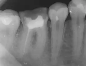 - ↑ Murphy, WK, Healing of periapical radiolucencies after nonsurgical endodontic therapy, Oral Surg Oral Med Oral Pathol 1991 May;71(5):620-4.