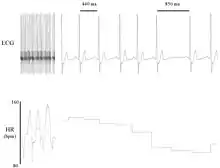 - Respiratory arrhythmia (or respiratory sinus arrhythmia).[36][37] This heart rate variation is directly caused by the central respiratory rhythm, faithfully tracks the respiratory rate across a range of frequencies and is a major cause of heart rate variability in humans (Cooper HE, Clutton-Brock TH & Parkes MJ (2004). Contribution of the respiratory rhythm to sinus arrhythmia in normal unanesthetized subjects during mechanical hyperventilation with positive pressure. American Journal of Physiology (Heart and Circulatory Physiology) 286, H402-H411).