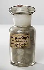 On March 26, 1895, Scottish chemist Sir William Ramsay isolated helium on Earth by treating the mineral cleveite (a variety of uraninite with at least 10% rare-earth elements) with mineral acids. Ramsay was looking for argon but, after separating nitrogen and oxygen from the gas, liberated by sulfuric acid, he noticed a bright yellow line that matched the D3 line observed in the spectrum of the Sun.[29][35][36][37] These samples were identified as helium by Lockyer and British physicist William Crookes.[38][39] It was independently isolated from cleveite, in the same year, by chemists, Per Teodor Cleve and Abraham Langlet, in Uppsala, Sweden, who collected enough of the gas to accurately determine its atomic weight.[40][41][27][42] Helium was also isolated by the American geochemist, William Francis Hillebrand, prior to Ramsay's discovery, when he noticed unusual spectral lines while testing a sample of the mineral uraninite. Hillebrand, however, attributed the lines to nitrogen.[43] His letter of congratulations to Ramsay offers an interesting case of discovery, and near-discovery, in science.[44]