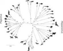 Hepacivirus is a genus of positive-strand RNA viruses in the family Flaviviridae.[3] The hepatitis C virus (HCV), in species Hepacivirus C, infects humans and is associated with hepatitis and hepatocellular carcinoma.[3][4] There are fourteen species in the genus which infect a range of other vertebrate.[3]