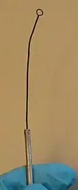 An inoculation loop (also called a smear loop, inoculation wand or microstreaker) is a simple tool used mainly by microbiologists to pick up and transfer a small sample of microorganisms called inoculum from a microbial culture, e.g. for streaking on a culture plate.[1][2] This process is called inoculation.