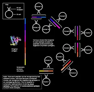 - ↑ Goldsby, Richard; Kindt, TJ; Osborne, BA; Janis Kuby (2003). "Antigens (Chapter 3)". Immunology (Fifth ed.). New York: W. H. Freeman and Company. pp. 57–75. ISBN 0716749475.