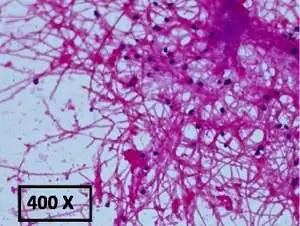 | Photomicrograph of colony growing on Modified Leonian's agar | |