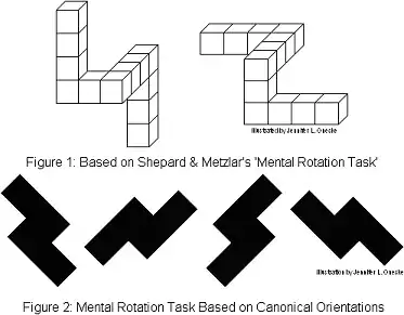 • Shepard, Roger N.; Metzler, Jacqueline (1971). "Mental rotation of three-dimensional objects". Science. 171 (3972): 701–703. Bibcode:1971Sci...171..701S. CiteSeerX 10.1.1.610.4345. doi:10.1126/science.171.3972.701. PMID 5540314. S2CID 16357397.