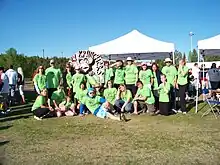 Walkers can register as an individual or as part of a team. However, the MS Society actively encourages walkers to register as a team, so they can experience the camaraderie of walking with a group of people all working towards a common goal. Teams can consist of family, friends, co-workers, hockey buddies, book club members, etc. Many teams across the country show team spirit by representing their team with t-shirts, temporary tattoos, flags and costumes.