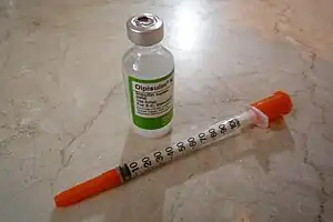 Side effectsLow blood sugar, pain or skin changes at the sites of injection, low blood potassium, allergic reactions[3]