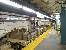 A pipelayer (or pipe-layer or drain layer) is a skilled tradesman who lays pipe, such as for storm sewers, sanitary sewers, drains, and water mains.[1] Pipelayers may grade (i.e., level) trenches and culverts, position pipe, or seal joints.[1] The Standard Occupational Classification System code for pipelayers is 47-2151.[1]