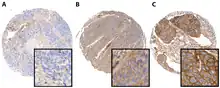 PD-L1 expression by chromogenic immunohistochemistry in cases of head and neck squamous cell carcinoma, demonstrating negative (A), low (B), and high (C) PD-L1 protein levels[28]