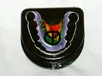 The best-known removable retainers are the Hawley retainers, which consist of a metal wires that typically surround the six anterior teeth and keep them in place. Hawley retainers are one of the oldest types of removable retainers.[1] Named for its inventor, Dr. Charles A. Hawley, the labial wire, or Hawley bow, incorporates 2 omega loops for adjustment. It is anchored in an acrylic baseplate that sits in the palate (roof of the mouth). They are made from metal wire running along the outside of the teeth. There are many adaptations possible with Hawley retainers.[1] The advantage of this type of retainer is that the metal wires can be adjusted to finish treatment and continue minor movement of the anterior teeth as needed.[3] It also benefits from being robust and rigid, easy to construct and allows prosthetic tooth/teeth to be added onto with metal stops placed mesial and distal to the prosthetic teeth to prevent any relapse. To help fix rotations; acrylic facing can be added to the labial bow and a bite plane added to maintain the result of deep overbite correction. Also, to control the position of the canine, reverse U-loop can be employed. Additionally, to avoid occlusal interferences, the labial bow can be soldered to the cribs.[1]