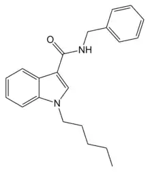 - ↑ Banister SD, Wilkinson SM, Longworth M, Stuart J, Apetz N, English K, et al. (July 2013). "The synthesis and pharmacological evaluation of adamantane-derived indoles: cannabimimetic drugs of abuse". ACS Chemical Neuroscience. 4 (7): 1081–92. doi:10.1021/cn400035r. PMC 3715837. PMID 23551277.
