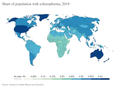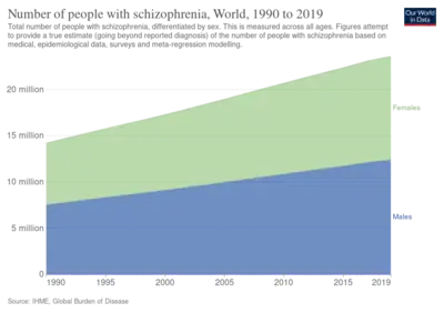 - ↑ Charlson FJ, Ferrari AJ, Santomauro DF, et al. (17 October 2018). "Global Epidemiology and Burden of Schizophrenia: Findings From the Global Burden of Disease Study 2016". Schizophrenia Bulletin. 44 (6): 1195–1203. doi:10.1093/schbul/sby058. PMC 6192504. PMID 29762765.