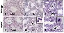 Mutations in Mtap2, a microtubule-associated protein, as observed in repro4 mutant spermatocytes, have been shown to arrest spermatogenesis progress during the prophase of meiosis I. This is observed by a reduction in spermatid presence in repro4 mutants.[14]