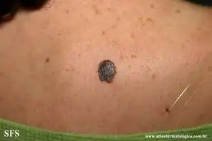 It is also known as an epithelioid and spindle-cell nevus,[3] and misleadingly as a benign juvenile melanoma,[3]: 691 and Spitz's juvenile melanoma[4]). The name juvenile melanoma is generally no longer used as it is neither a melanoma, nor does it occur only in children.[5]